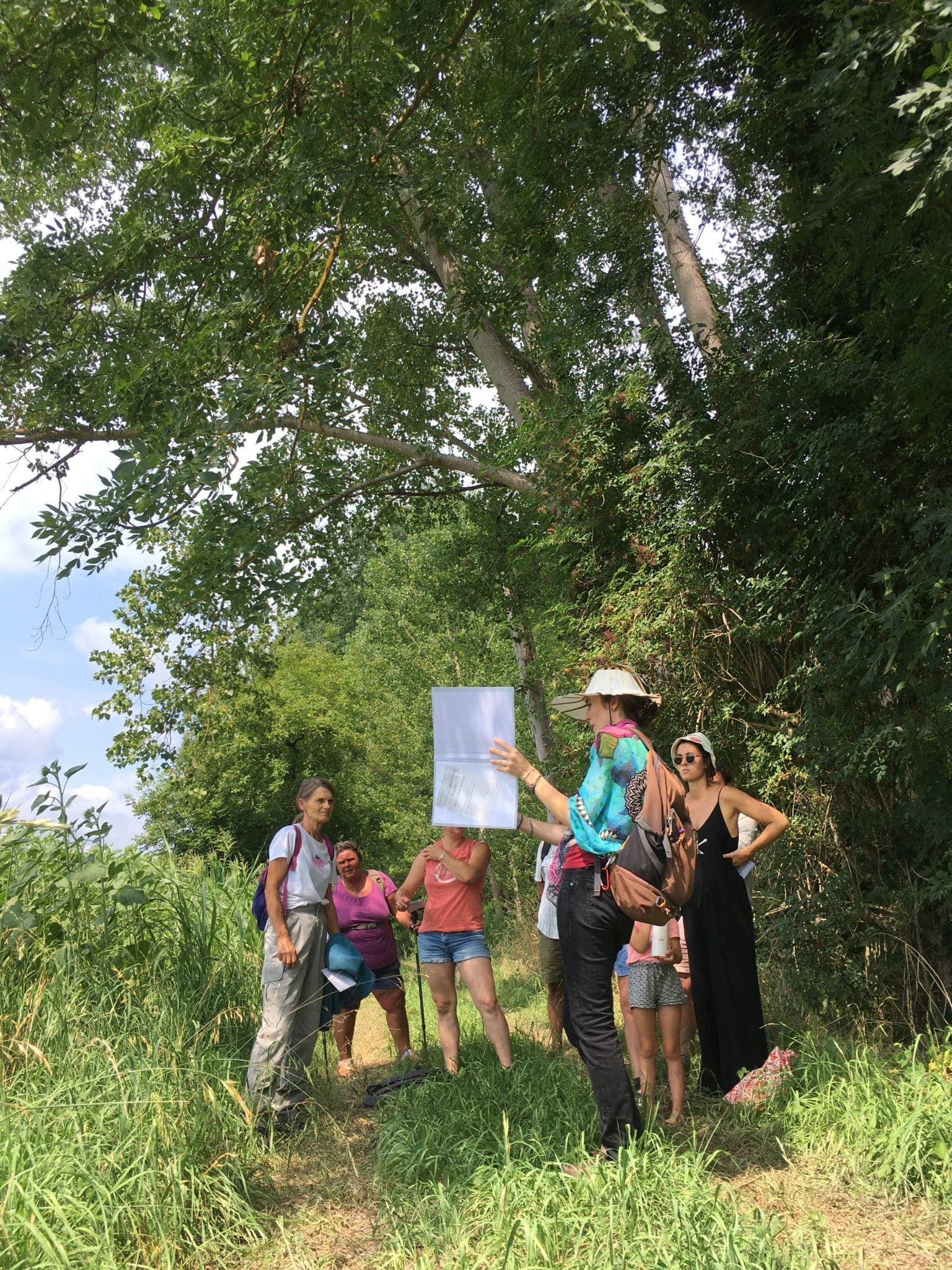 Aux arrêts thématiques, nous étudierons le territoire avec un peu d’histoire locale, des regards sur la nature, l’agriculture, l’architecture et le dessin, mais aussi les couleurs et les sonorités…